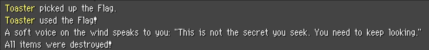 Looking back at all of the files we found earlier, config.js has a couple of parts that seem relevant to how the flag item works: